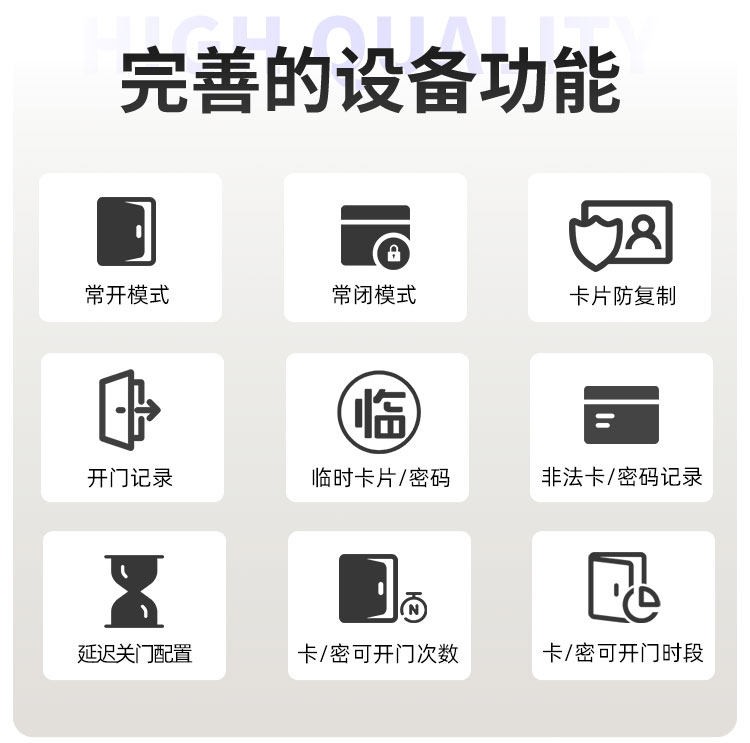 广东这款智能门锁提供室内门锁和防盗门锁两种选择,其中室内门锁尺寸为 2806521mm,适配 5050 锁体;防盗门锁尺寸为 3657021mm,适配 6068 锁体,可满足不同场景的安装需求。它采用铝合金一体成型搭配钢化玻璃面板打造,兼具坚固耐用的品质与简洁美观的视觉效果。门锁支持蓝牙无线通讯,解锁方式丰富多样,密码、卡片、蓝牙、钥匙四种方式随心选择,满足不同使用习惯与应急需求。其工作温度范围为 - 20~70℃,能适应多数地区的气候条件,采用碱性电池供电,安装更换便捷,是兼具安全性与实用性的门锁选择。